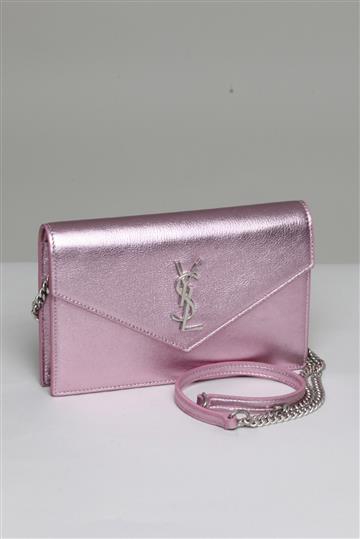 Bolsa Saint Laurent Envelope Chain Wallet Metalizada