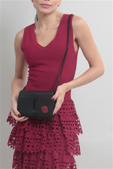 Bolsa Saint Laurent Chain Wallet Leather Preta