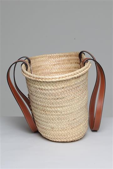 - Logomarca decorativa frontal com pequenas tachas metálicas aplicadas