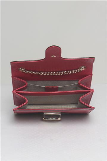 - Alça superior dupla composta por corrente e tira de couro com possibilidade de uso alongado