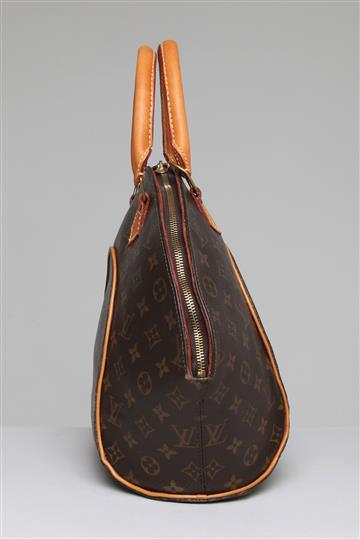 - Alças tubulares duplas com detalhes metálicos e pespontos aparentes