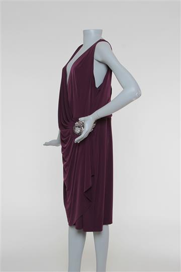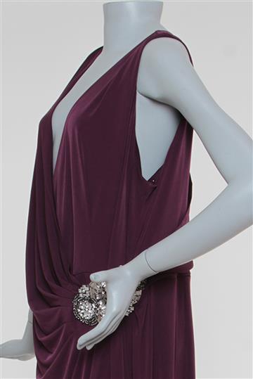 - Decote amplo drapeado e transpassado em 'V'