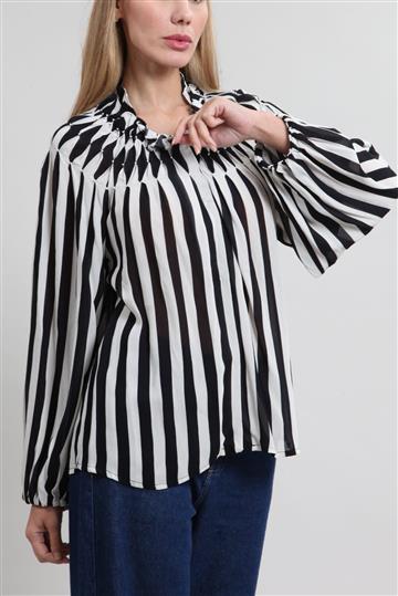 - Blusa em tecido leve e ligeiramente fluido