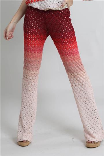 - Calça em tricot leve com fios de lurex aplicados à trama