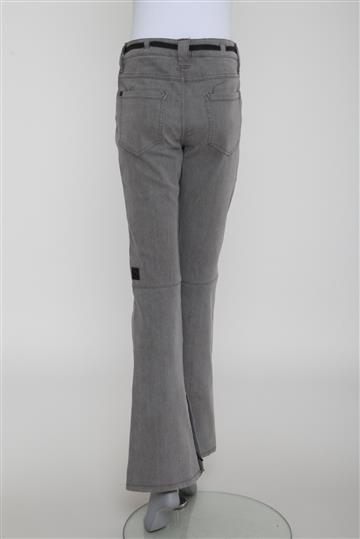 - Calça em jeans com sutil elasticidade- Cinza e preto- Modelagem estilo boot cut- Cintura baixa- Cós reto com passantes e amarração frontal para ajuste ao corpo- Quatro bolsos frontais funcionais- sendo um deles com zíper- Dois bolsos posteriores- Recortes aparentes para melhor vestibilidade- Forro interno- Barras amplas com zíperes internos- Comprimento regular- Fechamento frontal por abotoamento e zíper oculto