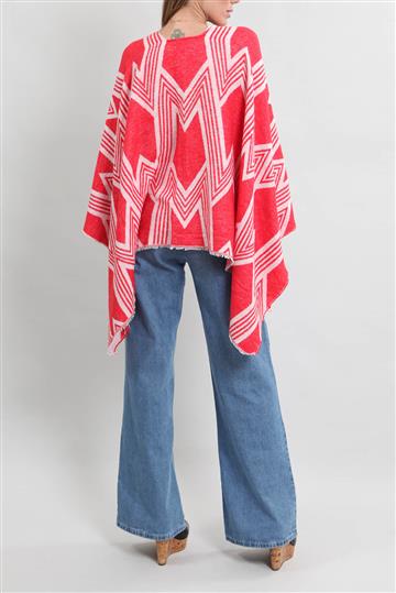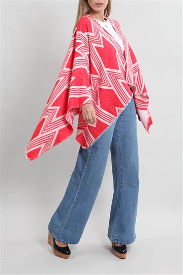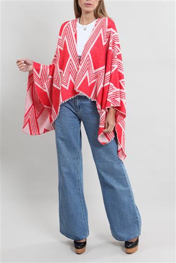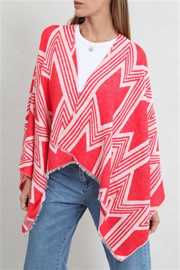 - Poncho em tricot macio e felpado à base de algodão com viscosex- Vermelho claro e branco- Padronagem geométrica em zig-zag- Modelagem ampla e assimétrica- Abertura frontal alongada- Acabamento por pequenas franjas- Comprimento ligeiramente alongado- Sem fechamento
