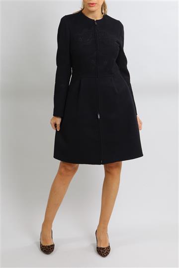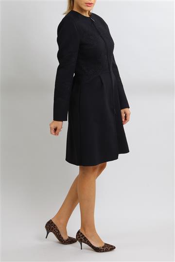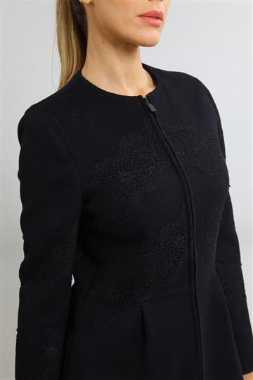 - Casaco em lã encorpada de toque macio com detalhes em renda