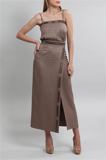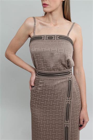 - Padronagem geométrica em ton sur ton com leve brilho acetinado
