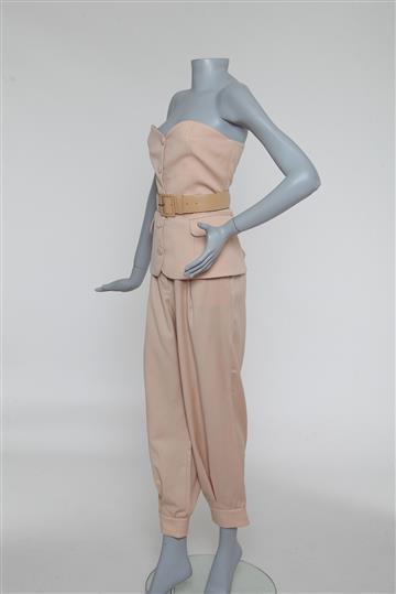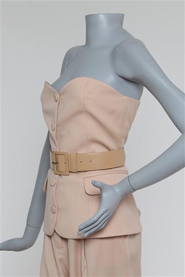 - Cintura alta com cós reto e passantes