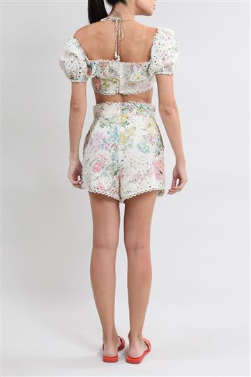 - Top possui modelagem justa ao corpo com decote reto de ombro à ombro
