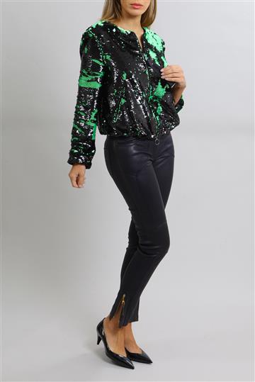 - Bomber em tecido leve e fluido inteiramente revestida por paetês reversíveis