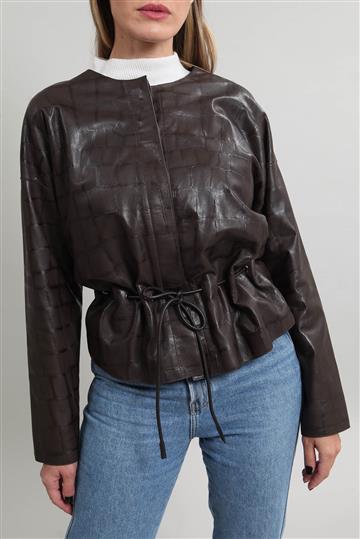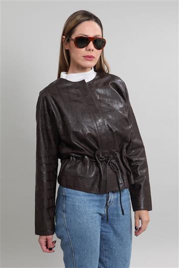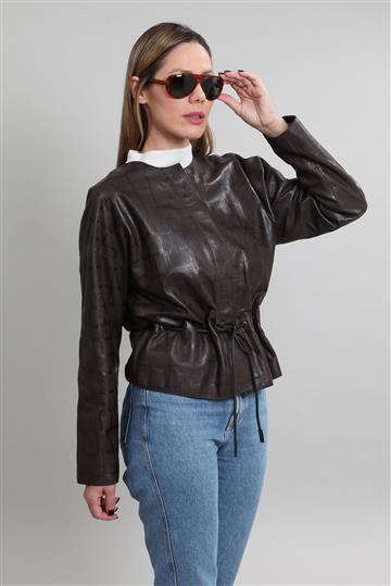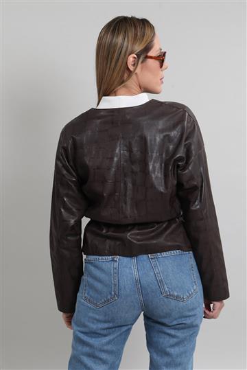 - Jaqueta em couro de cordeiro prensado com forro em cashmere