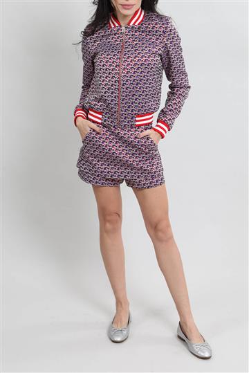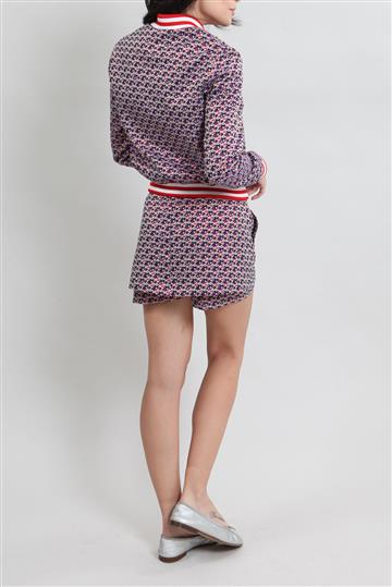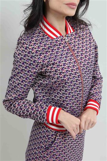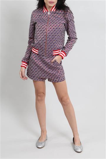 - Jaqueta em tecido encorpado e estampado estilo jacquard