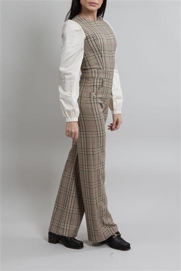 - Macacão em tecido à base de lã encorpado com detalhes em tricoline de algodão