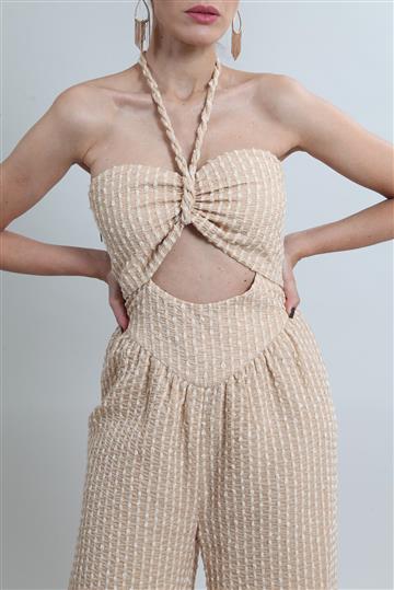 - Macacão em tecido leve e texturizado à base de algodão