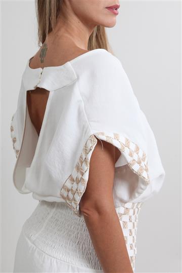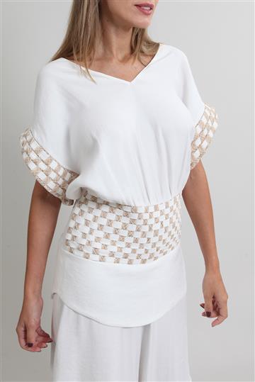 - Mangas curtas com punhos estruturados