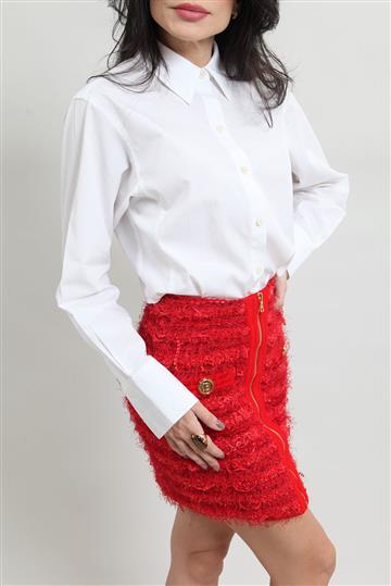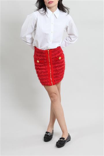 - Saia em bouclê de tricot texturizado com fios de luréx aplicados