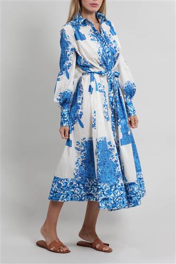 Vestido Achados da New Algodão e Renda Azul