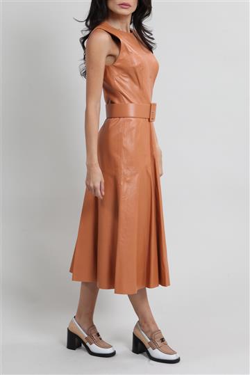 Vestido Max Mara Tubinho Couro Marrom