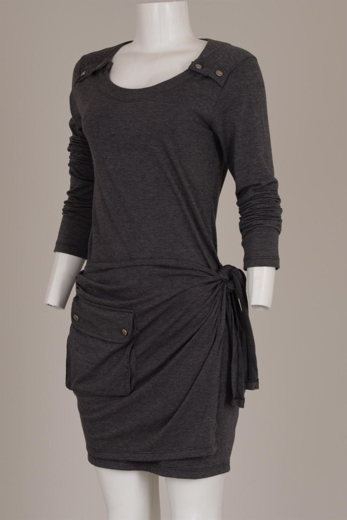 - Vestido em malha tipo viscolycra. - Decote redondo. - Botões de pressão prateados nos ombros. - Sobresaia com amarração
