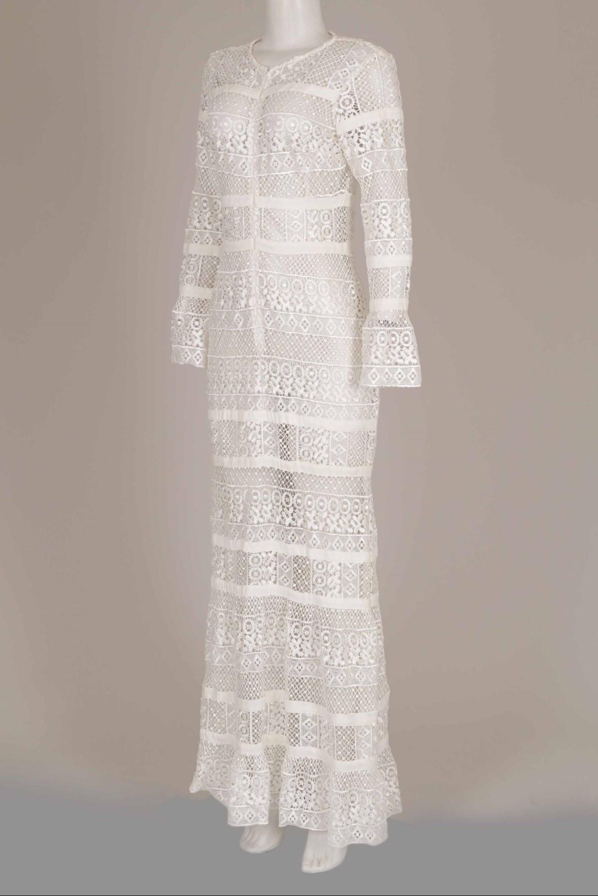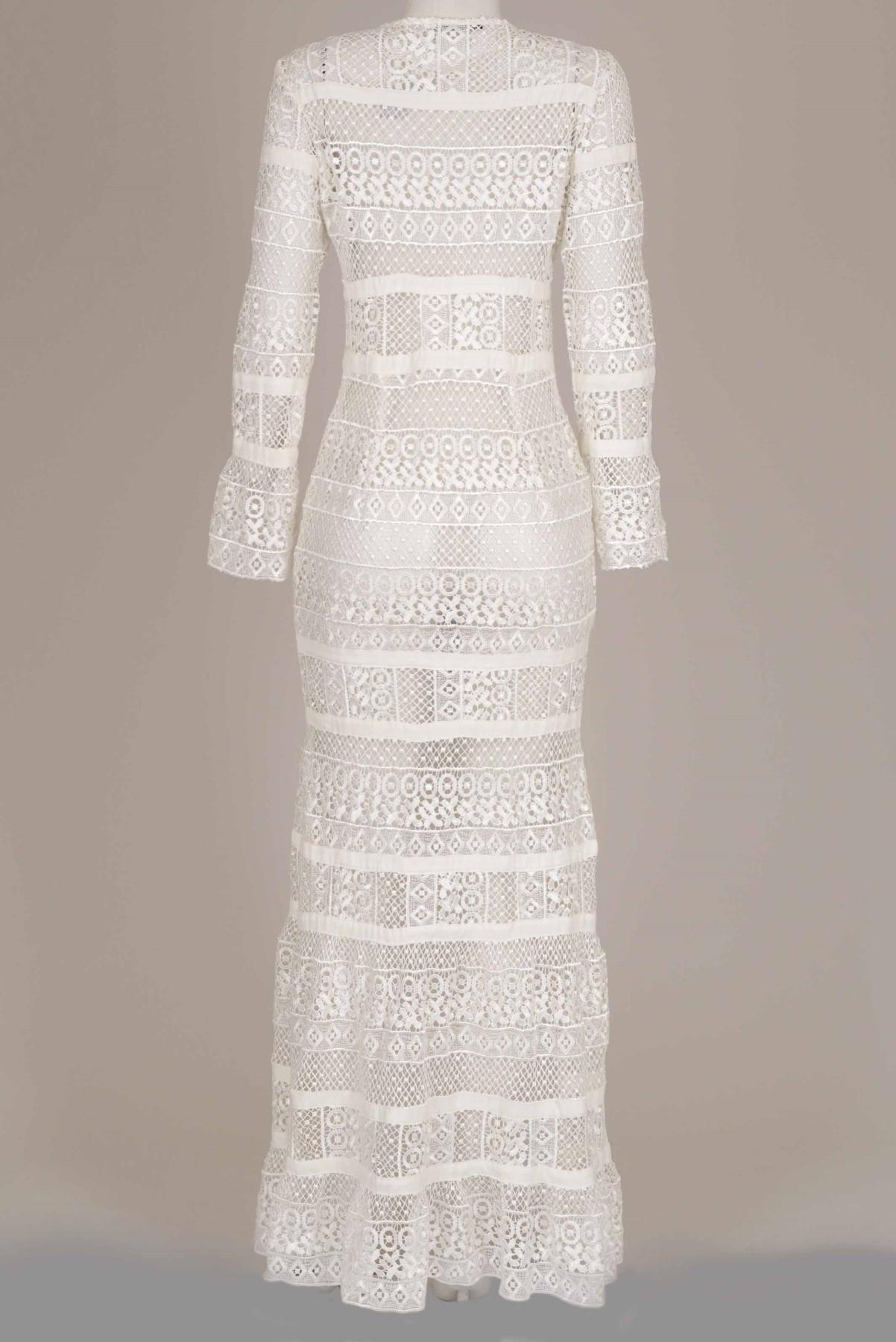 - Vestido em renda- Longo- Decote careca- Mangas longas- Fechamento po zíper invisível frontal