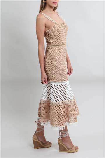 - Tramado rendado e ornamentado por padronagens geométricas e recortes vazados