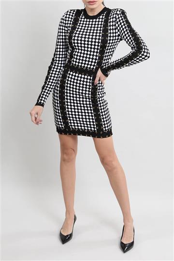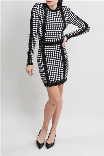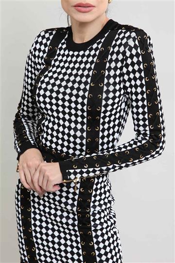 - Faixas decorativas com ilhóses aplicados e amarração estilo corset