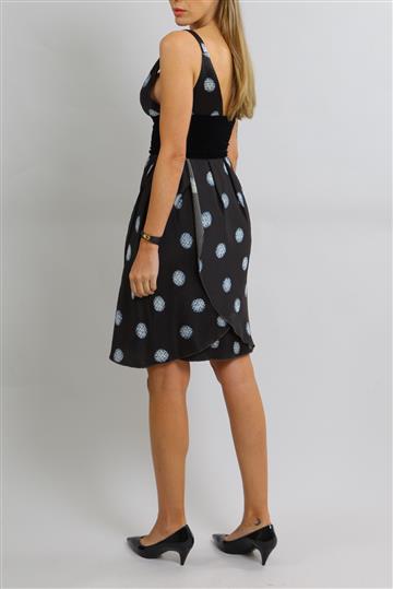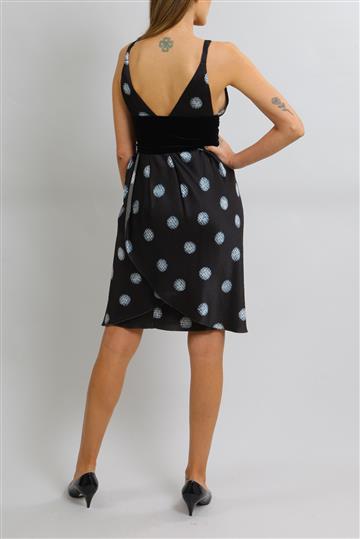 - Vestido em tecido leve e texturizado à base de seda e lã com detalhes em veludo