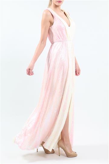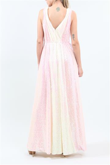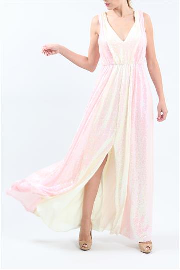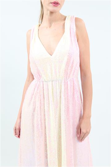 - Vestido em tecido leve e fluido inteiramente revestido por paetês