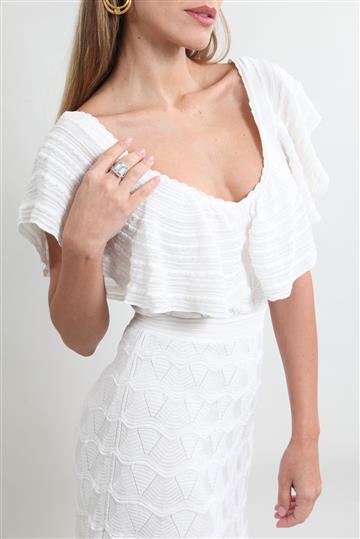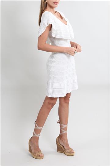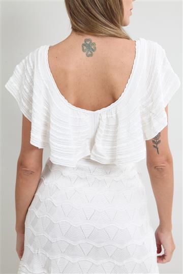 - Decote amplo em 'V' com pala fluida e ampla inferior
