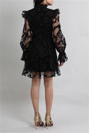 - Vestido em tule encorpado com detalhes em veludo
