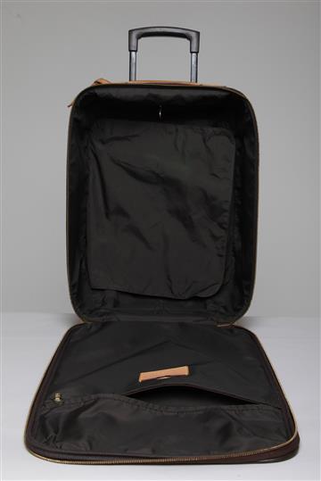- Abas com velcro internas - Rodinhas inferiores emborrachadas com sinais de desgaste
