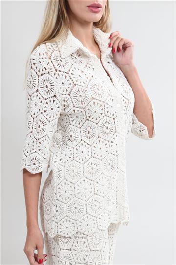 Vestido A. Niemeyer Longo Algodão e Ponto Palito Off-White