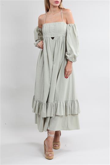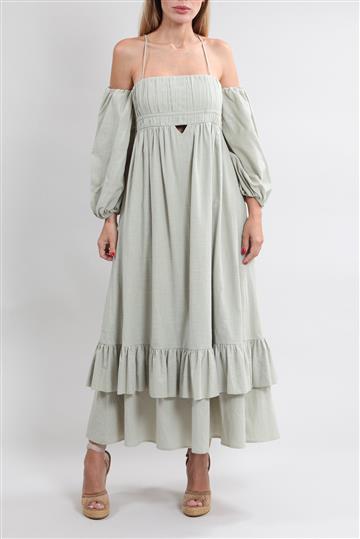 Vestido A. Niemeyer Longo pregueado com Recortes Verde