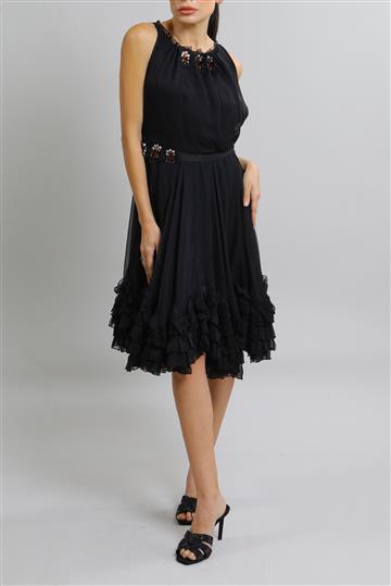 Vestido John Galliano Seda e Bordado Pedrarias Preto