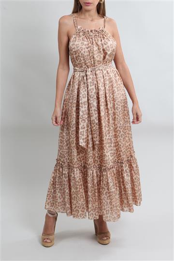 Vestido Zimmermann Longo Seda Animal Print Bege