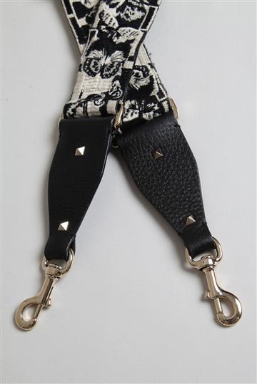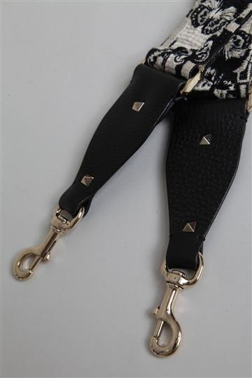 - Alça em tecido sarjado encorpado com detalhes em couro