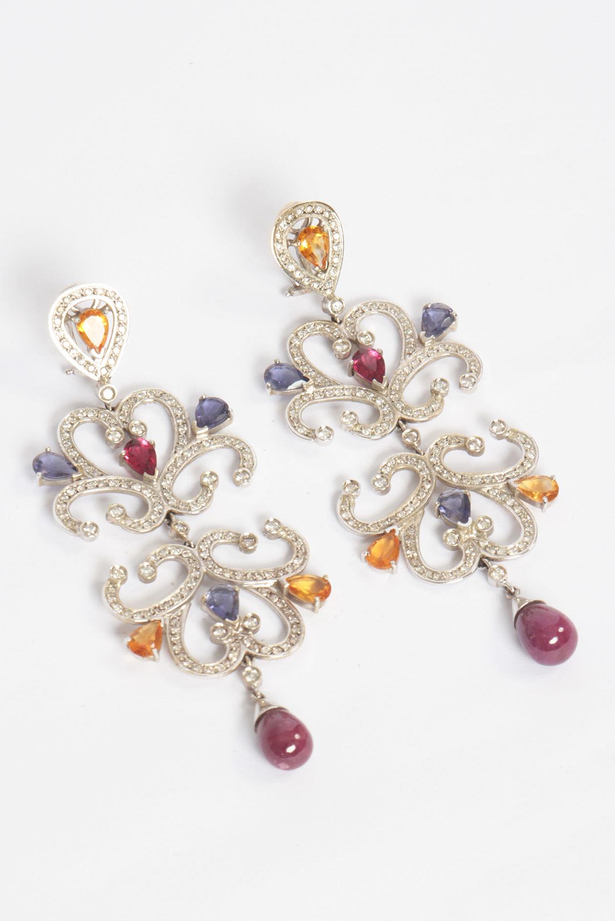 - Brincos em ouro branco com pedrarias
