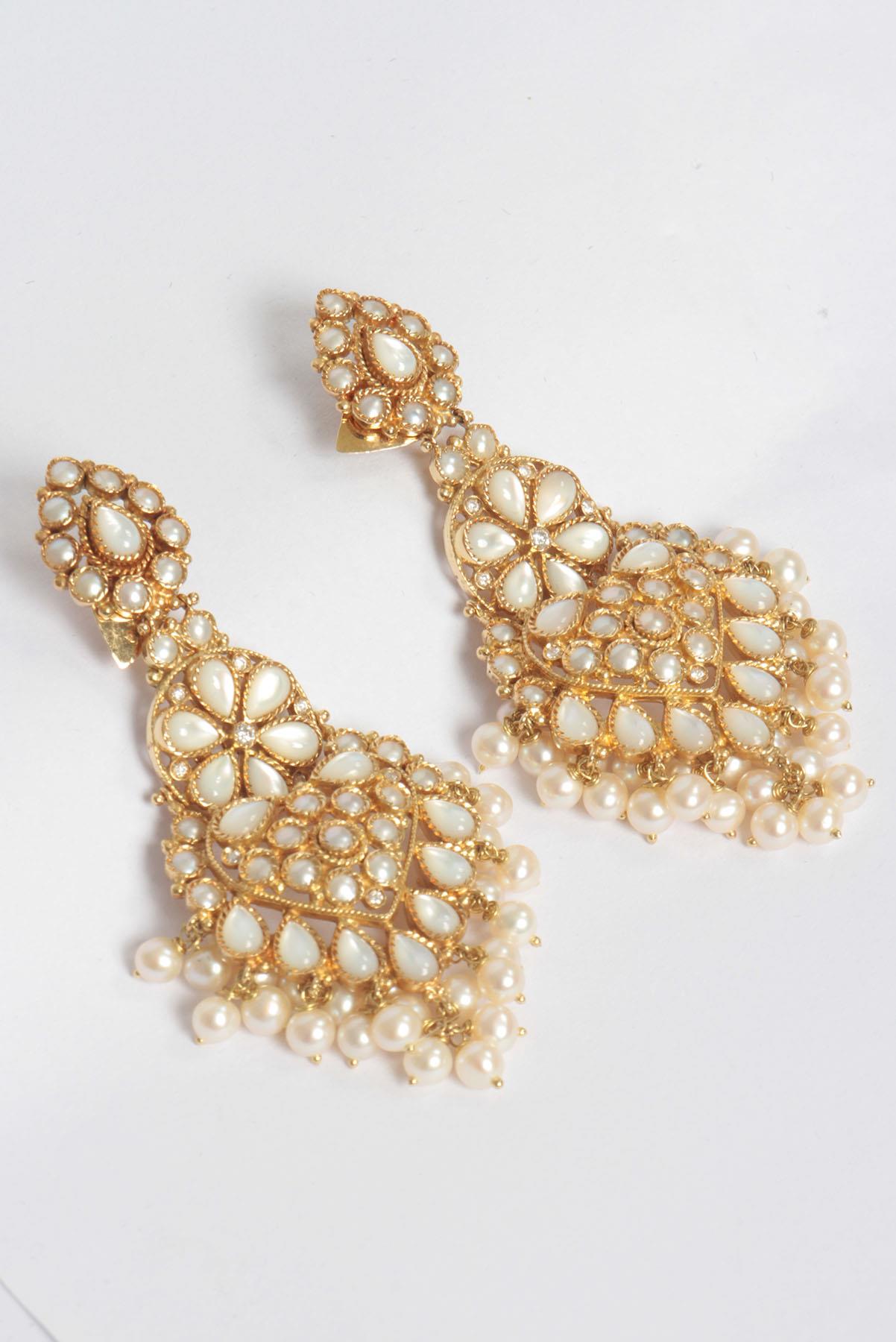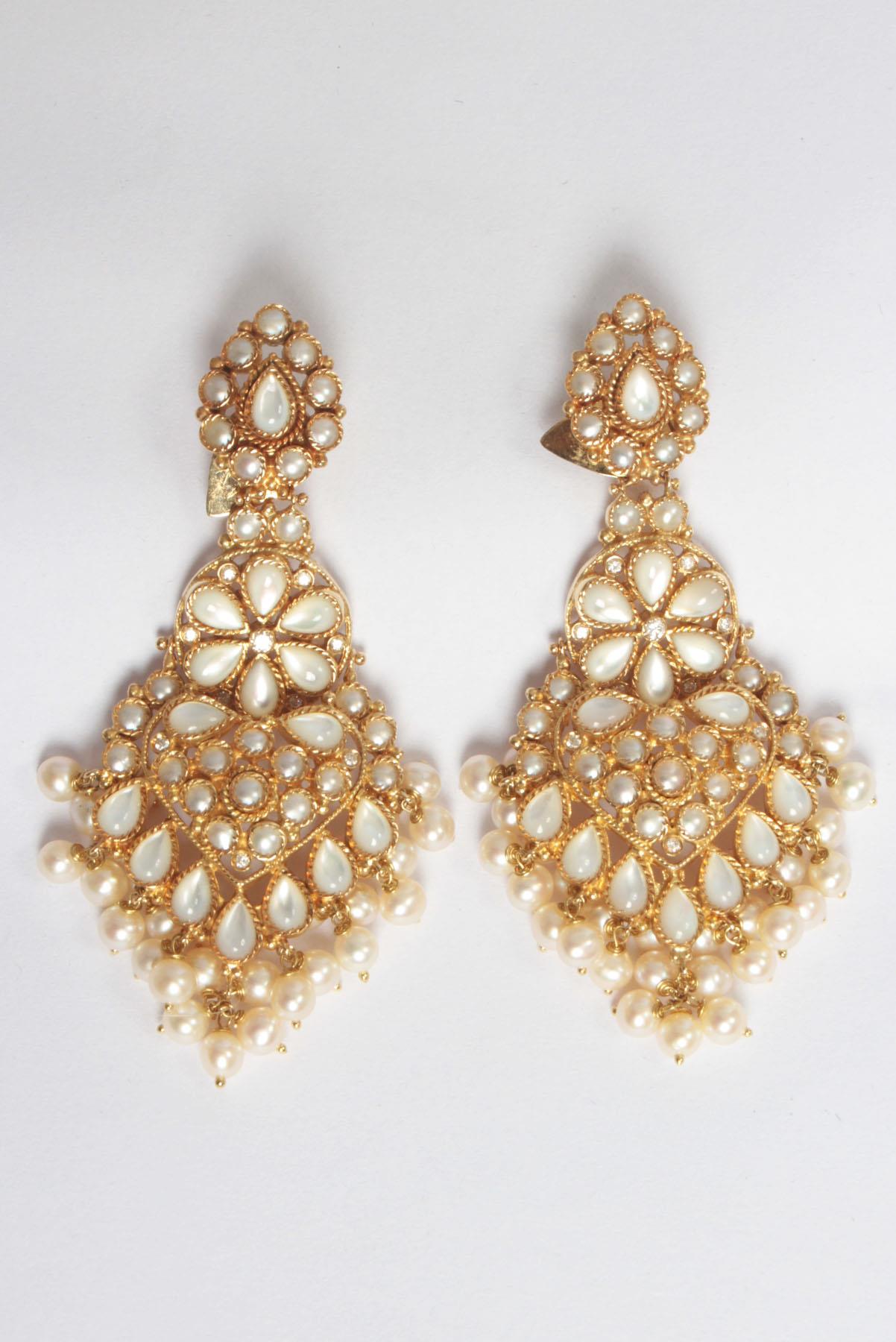 Brinco Frattina Chandelier Pérolas Dourado