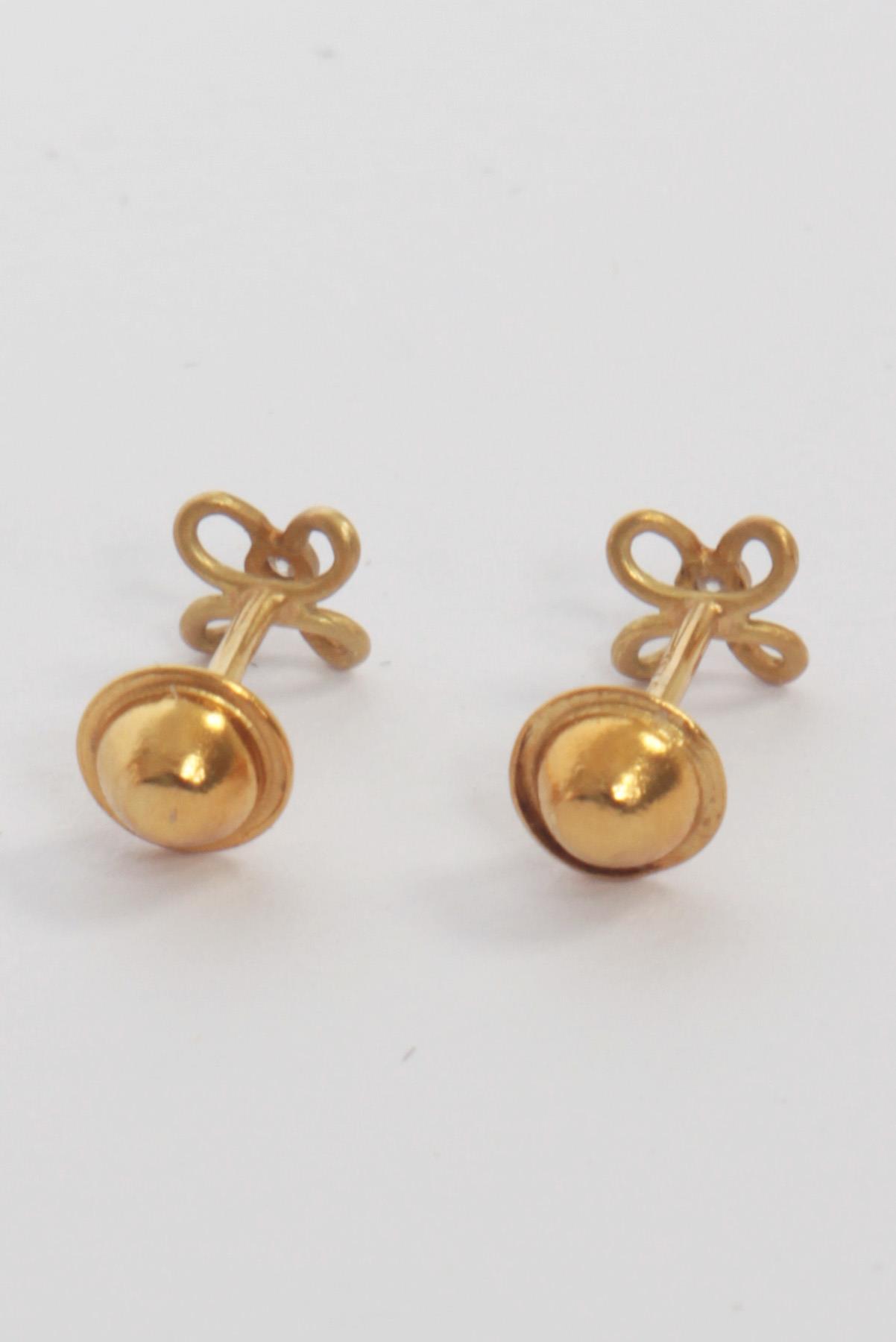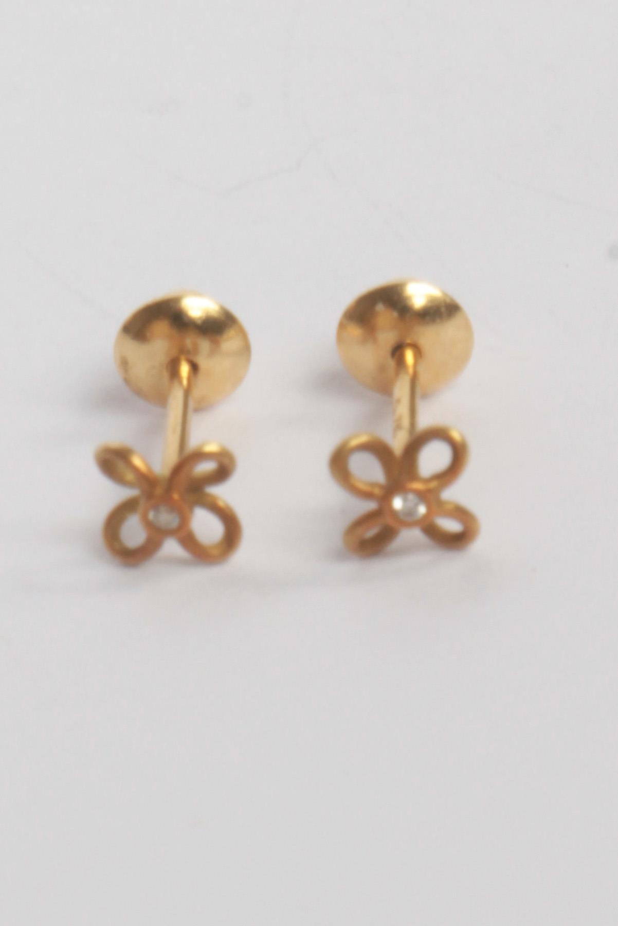 Brincos em ouro 18K- Dourado - Estrutura decorativa em formato de flor- Cravejados por pequenos brilhantes- Fechamento posterior por tarraxa de encaixe- Acompanha caixa