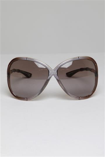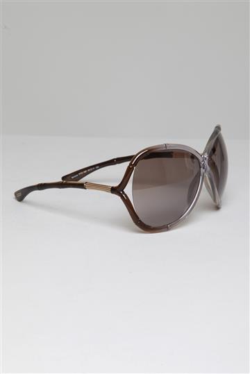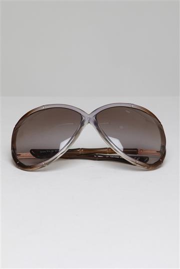 - Lentes ovaladas de tonalidade fumê mediana em sutil degradê