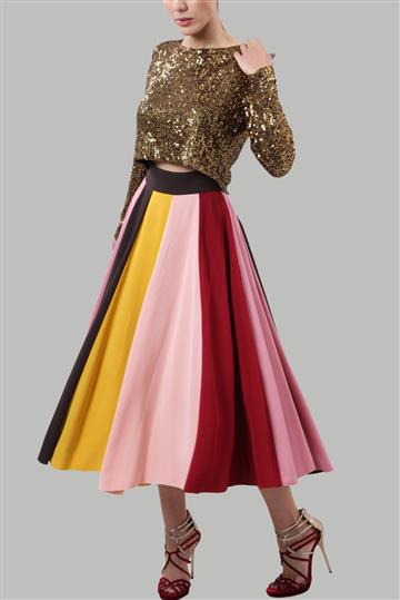Blusa Cropped Paetês Manga Longa Dourado