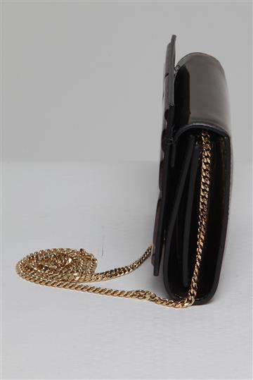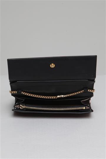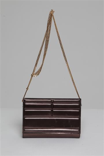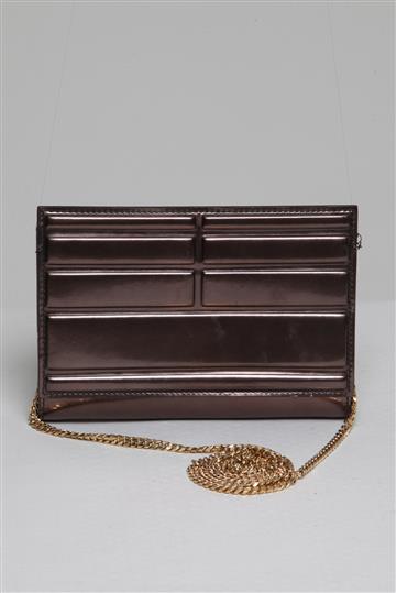 - Clutch em couro liso e encorpado com acabamento metalizado