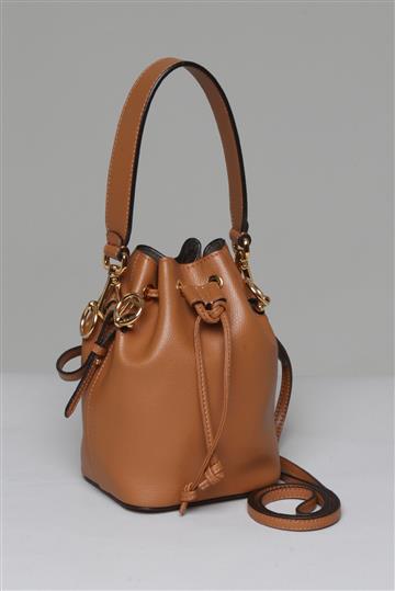- Bolsa estilo bucket em couro texturizado e encorpado