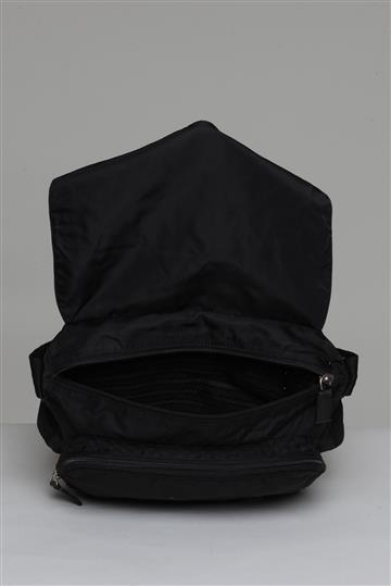 - Bolso frontal oculto sob a aba com zíper para fechamento
