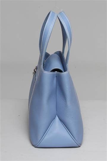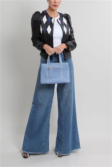 - Alças duplas fixas com recorte central para encaixe das mãos