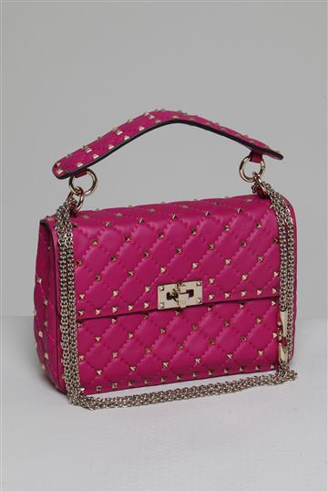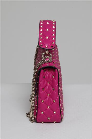 - Matelassê pespontado e acolchoado total com pequenos spikes metálicos aplicados