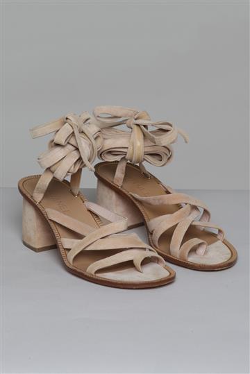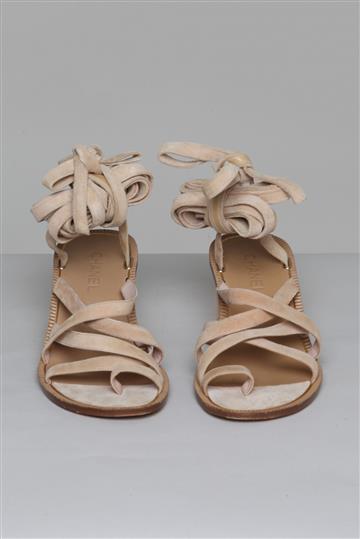 Sandália Chanel Camurça Gladiadora Salto Bloco Bege