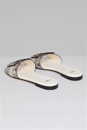 - Flat em couro liso e macio com detalhes em couro texturizado