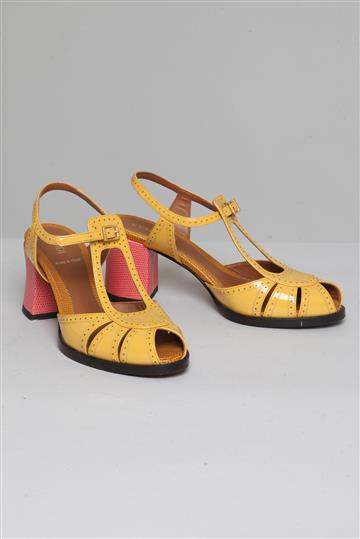 - Sandália em couro envernizado